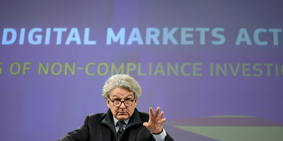 „Wir haben mit den Gatekeepern seit Monaten diskutiert, um sie auf den DMA vorzubereiten“, sagte Binnenmarktkommissar Thierry Breton. Doch seit der Einführung der EU-Regel sei nicht genug geschehen. „Wenn wir zu dem Schluss kommen sollten, dass sie nicht ihren Verpflichtungen nachgekommen sind, kommen auf die Gatekeeper schwere Strafen zu.“