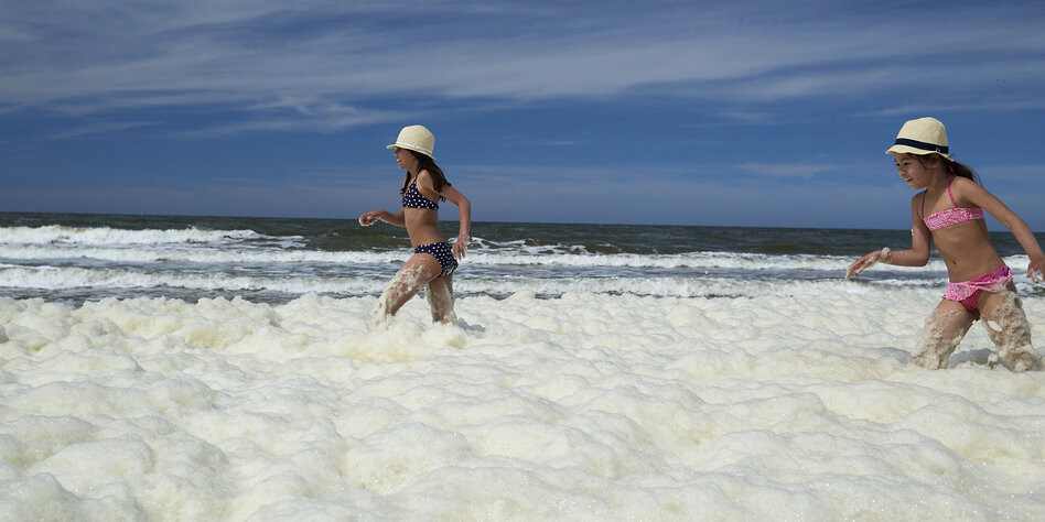 Amsterdam taz | Der Schaum der Nordsee ist gefährlicher, als bisher angenommen. Diese Nachricht schreckte kürzlich viele Niederländer*innen auf – ausgerechnet, als der bisher verregnete Sommer endlich in Gang zu kommen schien. Hohe Konzentrationen der als „Ewigkeitschemikalien“ bekannten PFAS stecken darin, weshalb das Gesundheitsministerium in Den Haag rät, jeglichen Kontakt zu vermeiden. Der Bericht des öffentlich-rechtlichen TV-Senders NOS schlug hohe Wellen, Aufnahmen von schaumübersäten Stränden waren allgegenwärtig, die Verunsicherung unter Badegästen war groß.