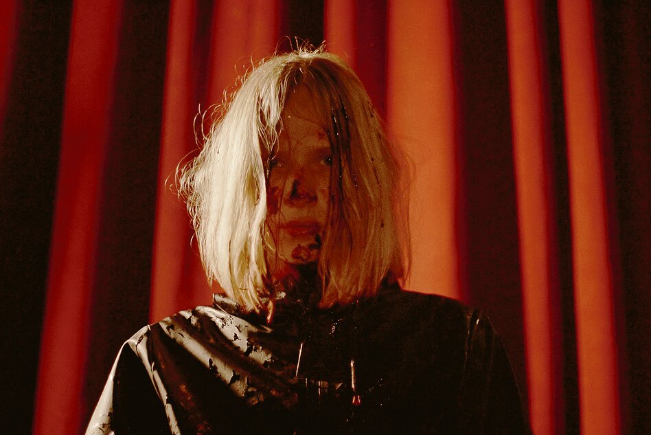 Hauptdarstellerin Luise Overmeyer, die in fast jeder Einstellung zu sehen ist, muss auch sonst kaum schauspielern, tut das aber doch: In kurzen, blutigen und schnell geschnittenen Actionszenen lebt Protagonistin Lou ihre Gewaltfantasien aus und fuchtelt mit einem Messer herum, bis das Kunstblut spritzt. Diese – ebenfalls wiederholte – Sequenz ist ein irritierender Fremdkörper im Film. Das verdeutlicht schon die Farbdramaturgie: Während der Rest von „Kino“ in schwarzweiß gedreht ist, leuchten diese Sequenzen in knalligem Rot.