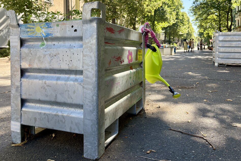 Dabei profitieren nicht nur SchülerInnen von weniger Lärm und mehr Bewegungsfreiheit: „Seit die Straße vor ein paar Wochen für den Autoverkehr gesperrt wurde, erleben wir, dass die Fläche auch nachmittags und abends gut angenommen wird“, sagt Jane-Goodall-Schulleiterin Kathrin Rohwäder. „Hier treffen sich Familien und auch Teile der Schulgemeinschaft.“ Die bezirkliche Fußverkehrsplanerin, Elisa Mattioli Lattanzi, freut sich über „Community Building“ durch Aktionen wie das gemeinsame Bepflanzen der Hochbeete.