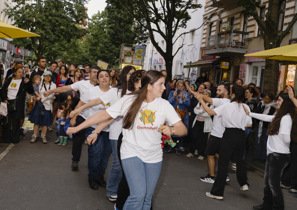 Dieser Gedanke zündete. Aus einer anfangs überschaubaren Gruppe von rund 20 Kiezbewohner:innen, die sich mit der Bakkal-Familie solidarisierten und wöchentliche Kundgebungen gegen die Verdrängung des Geschäftes organisierten, schlossen sich innerhalb kurzer Zeit hunderte Personen aus der umliegenden Nachbarschaft an.