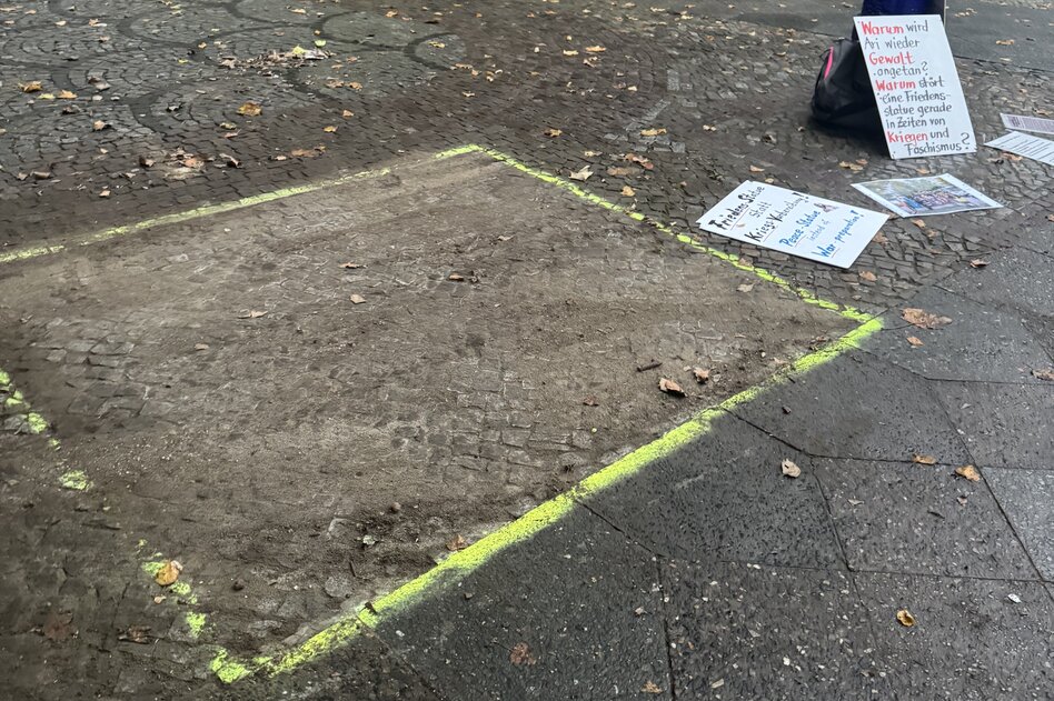Zurück an der Ecke Birkenstraße/Bremer Straße bleibt ein heller Fleck auf dem Boden. Anwohner haben ihn spontan mit Blumen und Aufschriften geschmückt. „Warum stört eine Friedensstatue gerade in Zeiten von Kriegen und Faschismus?“, steht auf einem Blatt Papier. Wohin die Statue gebracht wurde, ist dem Korea Verband bislang nicht bekannt.