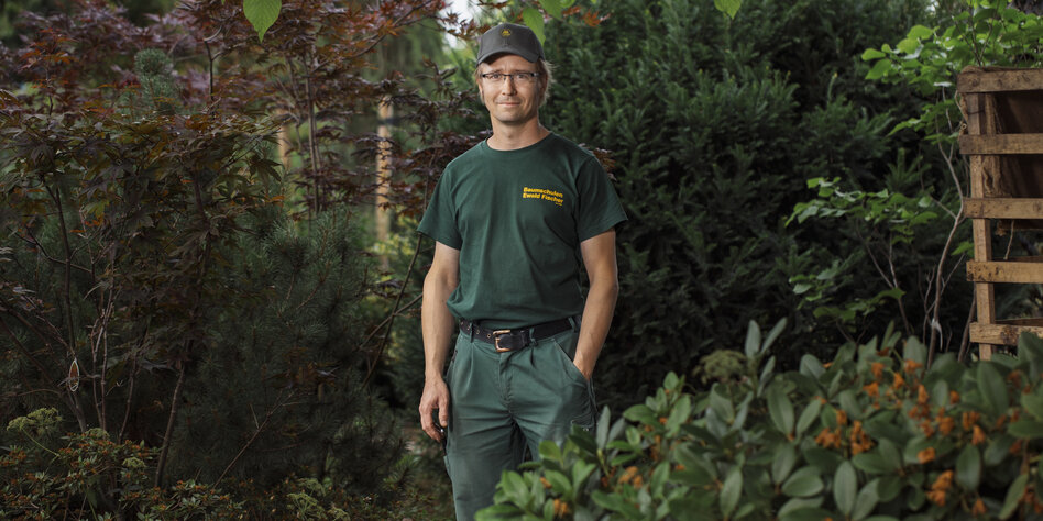 Felix Fischer führt eine Baumschule am Rande Berlins in dritter Generation. Er ist überzeugt, dass er mit dem besten Produkt der Welt arbeitet.