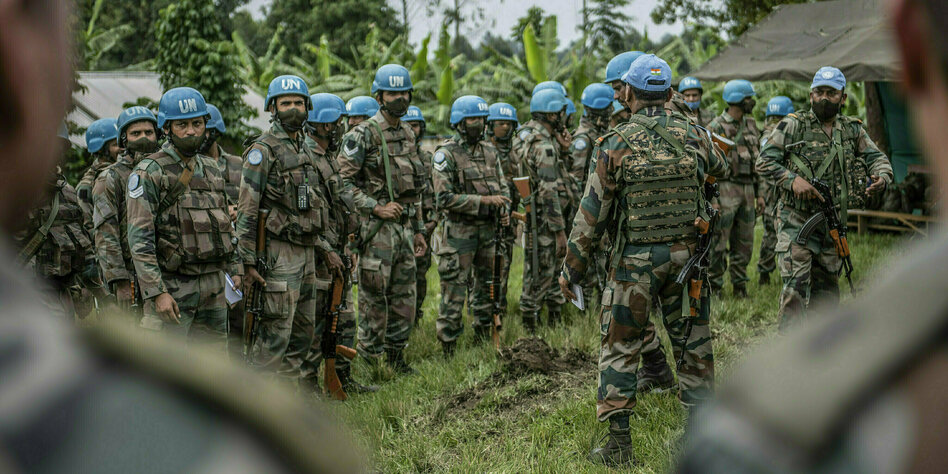 Kampala taz | Bei einem Protest gegen [1][die UN-Mission Monusco] im Osten der Demokratischen Republik Kongo sind mutmaßlich fünf Kriegsvertriebene von UN-Blauhelmen erschossen worden. Acht Menschen wurden verletzt, so Iduma Molengo, Polizeichef von Nyiragongo am Nordrand der Provinzhauptstadt Goma.