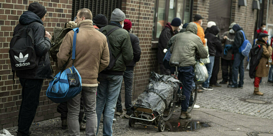 Berlin taz | Ein gutes Dutzend Obdachlose steht in der klirrenden Kälte vor der Essensausgabe der [1][Bahnhofsmission am Bahnhof Zoo]. An einem Fenster werden belegte Brötchen ausgeteilt, an dem anderen heiße Getränke. Warmes Essen gibt es hier nicht, auch kein heißes Wasser, sagt Alex, der sich gerne eine Suppe aufkochen würde, wie er der taz erzählt. Alex kommt jeden Tag hierher und holt sich etwas zu essen. Auch ins Hygiene-Center nebenan geht er regelmäßig, um sich zu duschen und die Zähne zu putzen.