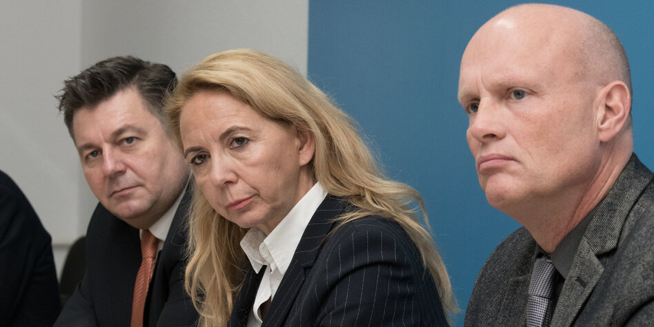 Bild: Leute, die auf Rolex starren: Senator Geisel (SPD), Polizeichefin Slowik und LKA-Mann Laudan