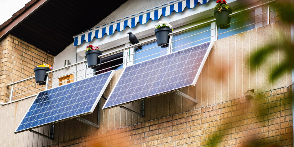 Viele Mieter*innen wollen Solarzellen auf dem Balkon. Vermieter*innen müssen meist zustimmen. In Hamburg verbieten manche die Installation.