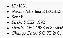 Bielek misspelled the maiden name of his mother, which is Kirches. However, at Ancestry.com (and taken from the Jachowski/Kiefer/Schmidt Genealogy), we found his family listed:
