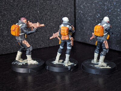 Starting with a new colour scheme: grey + more grey + orange (they look quite like SWAT teams, I like that)