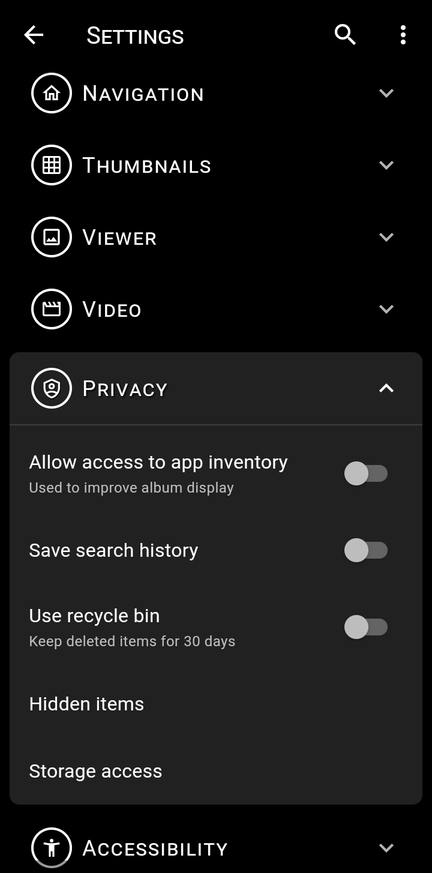 Navigation and search is an important part of Aves. The goal is for users to easily flow from albums to photos to tags to maps, etc. It also works as a media viewer and picker.