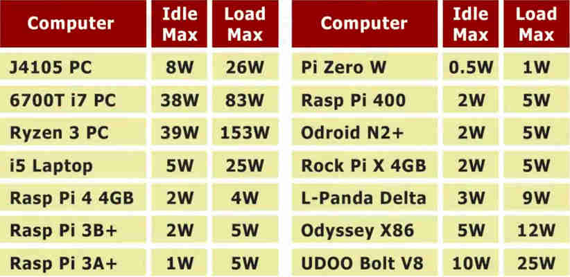 If all you have to power your stuff is some batteries and a few solar cells or a little wind turbine, energy efficency starts to matter, like alot. Traditional computers are notoriously power hungry things when they want to be. But just how energy efficent are SBCs compared to a desktop or laptop? Lets get some solid numbers down by taking a look at this chart made by ExplainingComputers for his video "PC & SBC Power Consumption"