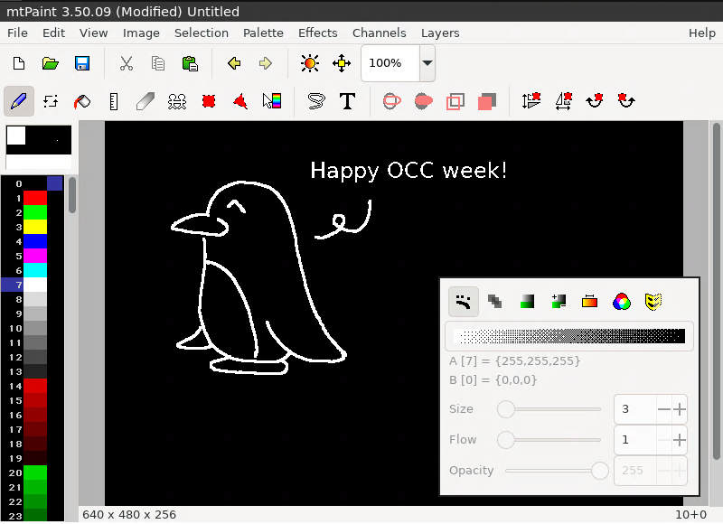 Kudos to Void and maintainer mobinmob for carrying mtPaint in the repos. Alpine has Pinta (the package there is currently orphaned), which Void does not, no mtPaint yet. As a paint program for a lower-spec device, mtPaint is the lighter choice. (Random aside: liking that `xpbs-query [package]` includes the package maintainer in the information.)