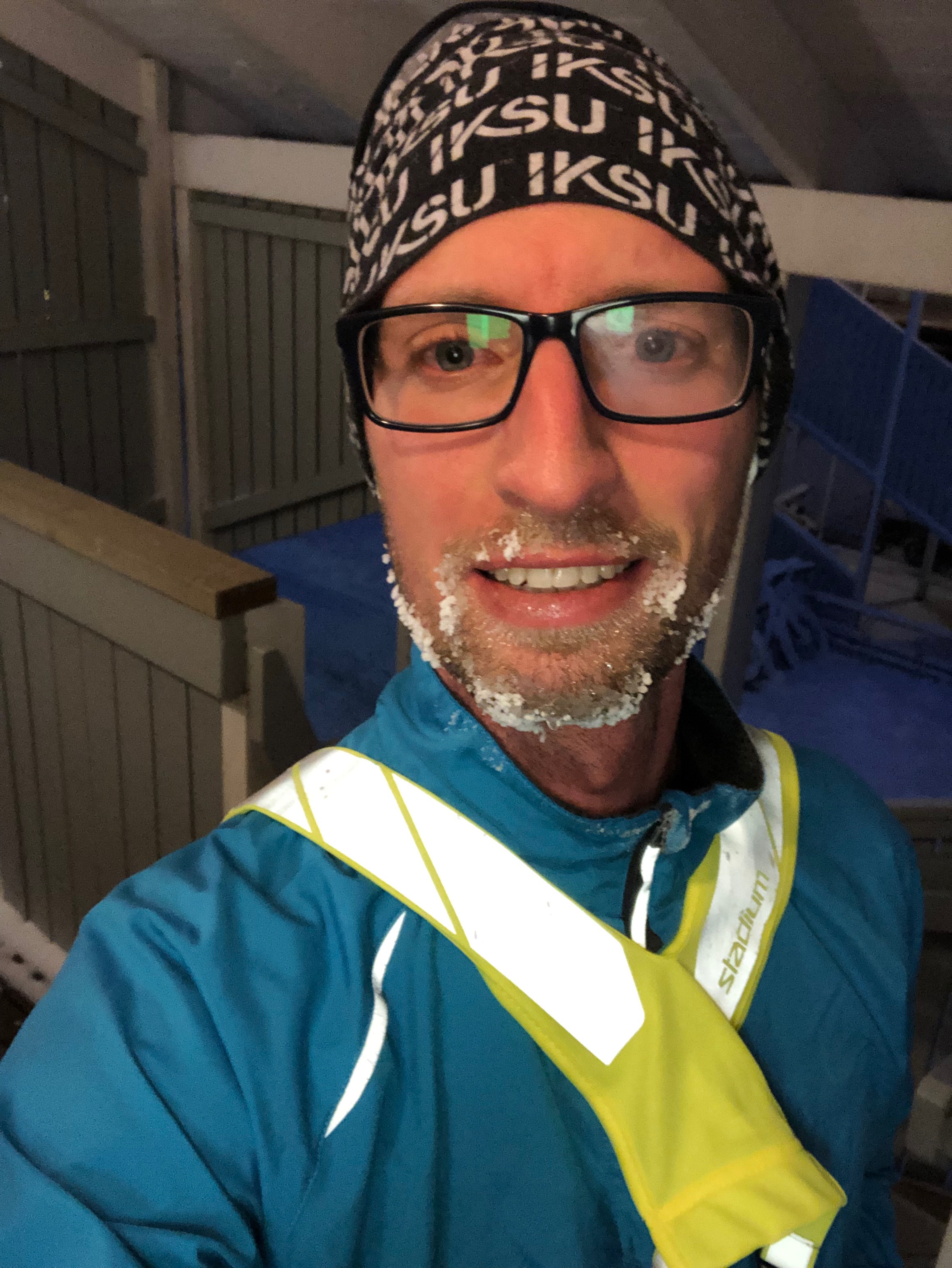 A bit of trivia for those from warmer climates: it seldom snows when it's colder than -10 C, and it's very seldom windy when it's colder than -15 C. Snow and ice also have different characteristics at different temperatures. At around -2 or warmer snow is sticky and you can make snowballs and snowmen. Ice is very slippery at that point. But when you're down at -5 snow stops sticking together. It becomes porous and powdery. Ice is also firmer, which makes it a little less slippery. At -10 ice becomes a little sticky somehow. My experience when running in that temperature is that I don't have to parry or risk slipping at all, more or less. My feet land firmly and follow through the step and only slip slightly if my feet are still connected to the ground when my center of gravity is too far ahead. It may be because it's often covered in a layer of frost.