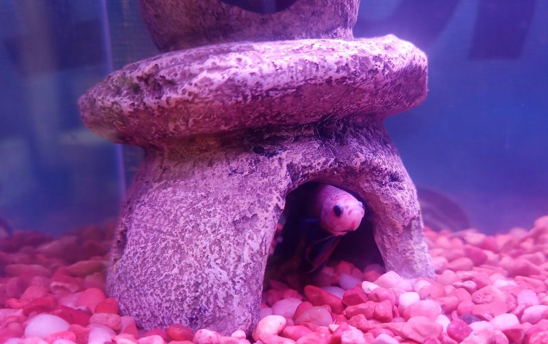The poor little guy was scared shitless. Luckily we had a spare temporary tank to put him in.