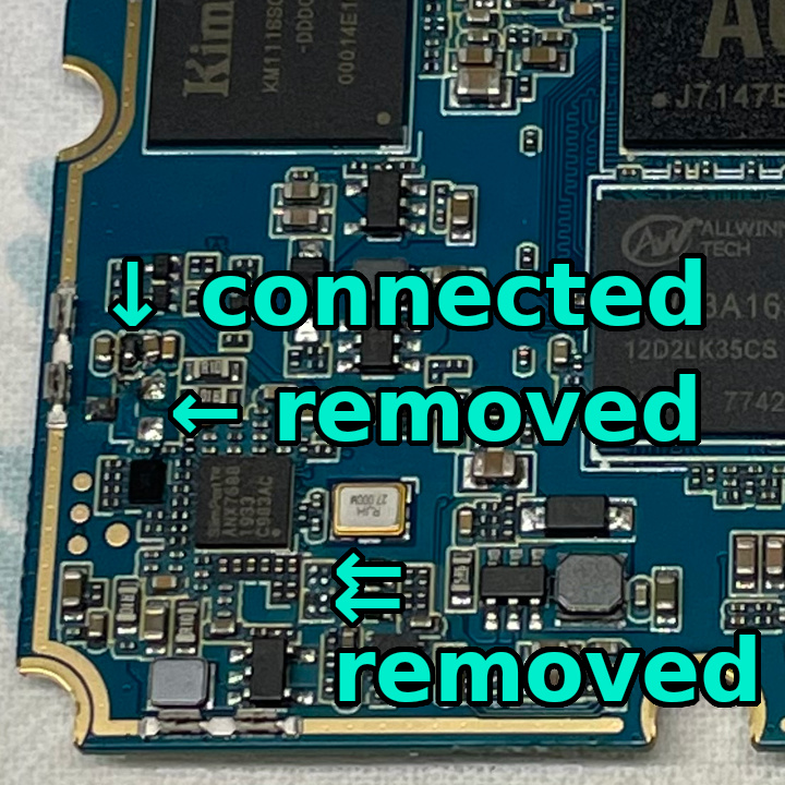 I removed the two chips by holding them with pliers and twisting clockwise and counterclockwise until they came off. Again, crude, but I don't think I have enough SMD experience to do this properly (remove and replace the part).