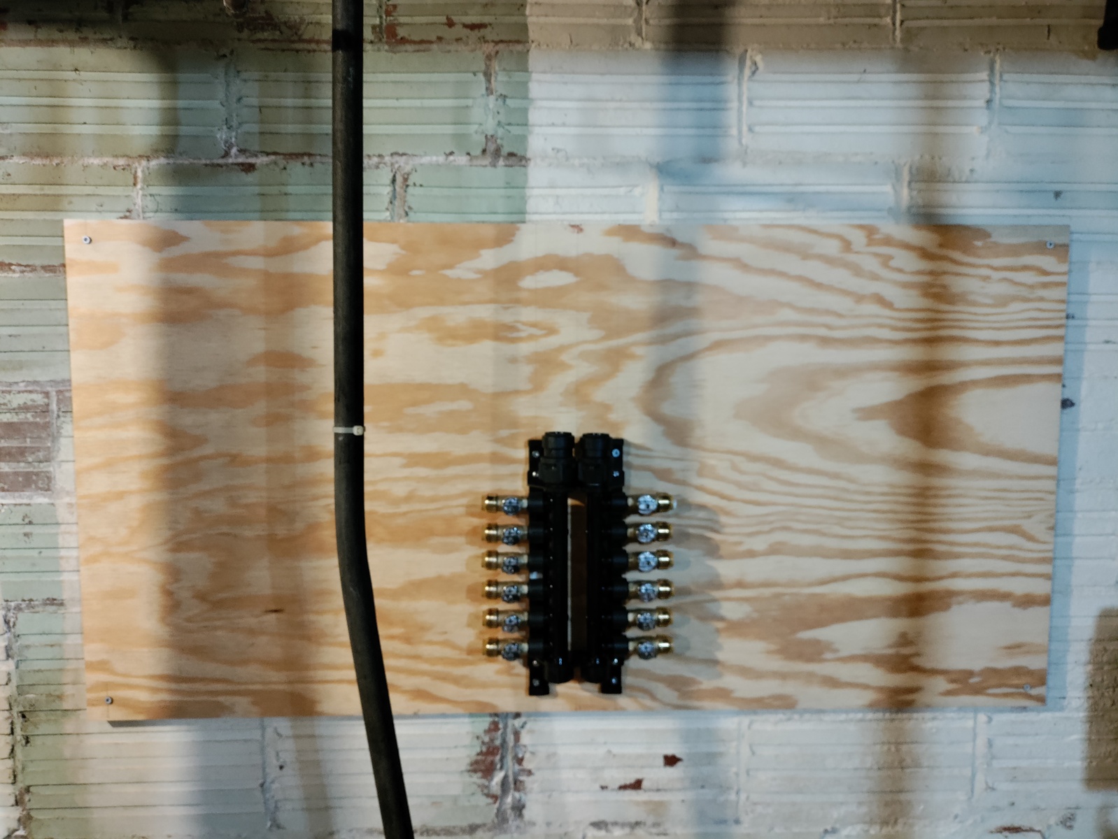 Installed a thick plywood board to mount the manifold to.