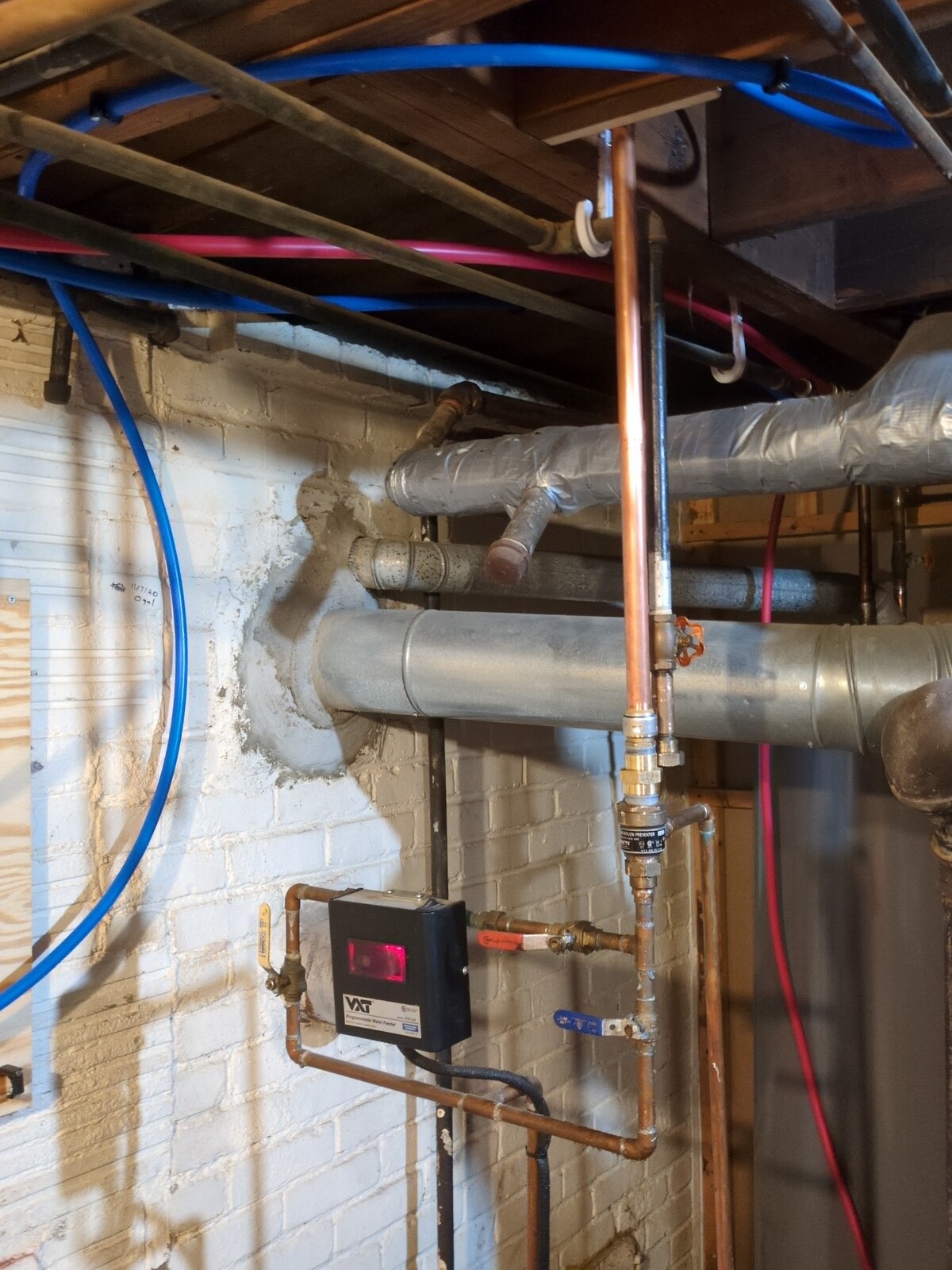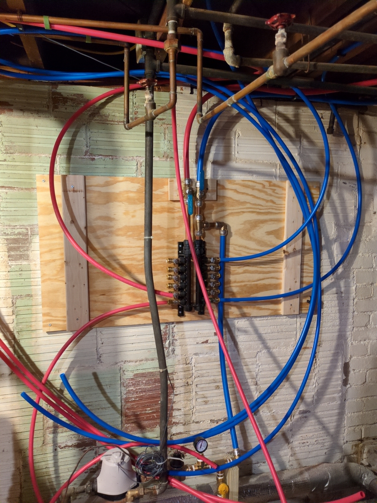 So galvanized pipes had to go. I did not want the corrosion to develop into full leaks at the visible spots, nor for it slowy eat away at copper where I cannot see. And since I planned to bypass galvanized pipes and install a pressure regulator, I might as well centralize the controls onto a manifold instead of relying on pipe spaghetti and stuck valves throughtout the basement.