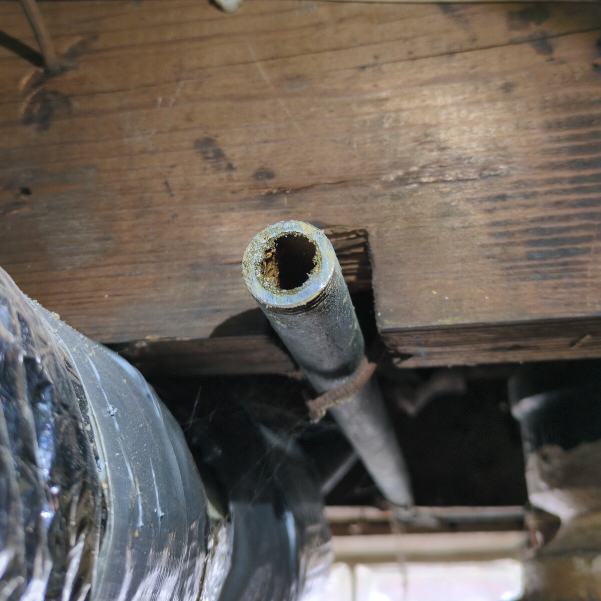 Much later, I also saw corrosion and rust accumulated inside of these galvanized pipes.