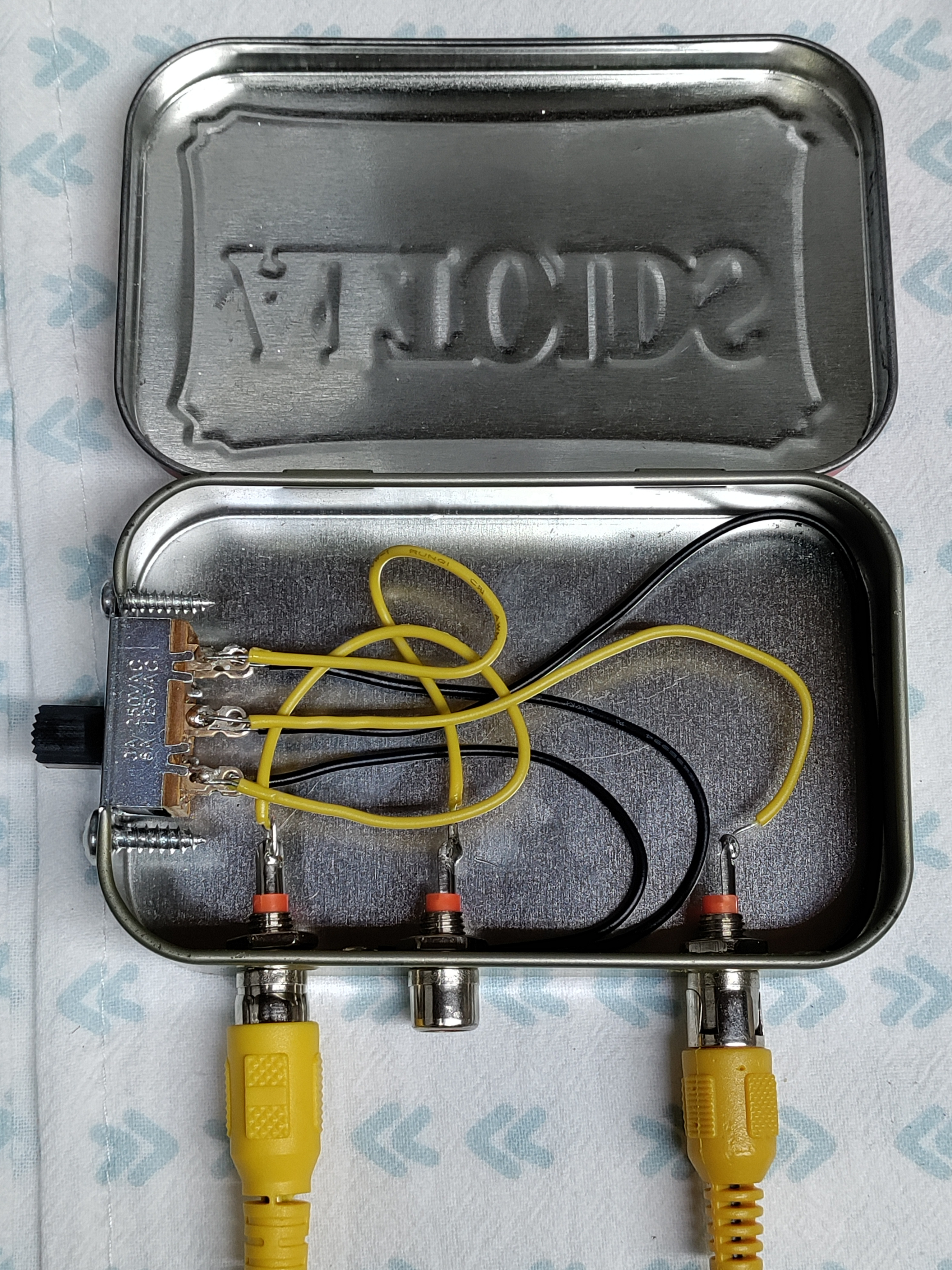 It's a rather janky build. The print took many hours and warped. I melted the internals of the power switch I intended to use while soldering onto it, so I had to improvise with another scrap switch that could fit into the opening. power and video plugs are not hole-mount types, so they are "reinforced" by silicone. (This is where I also learned that silicone has an expiration date)