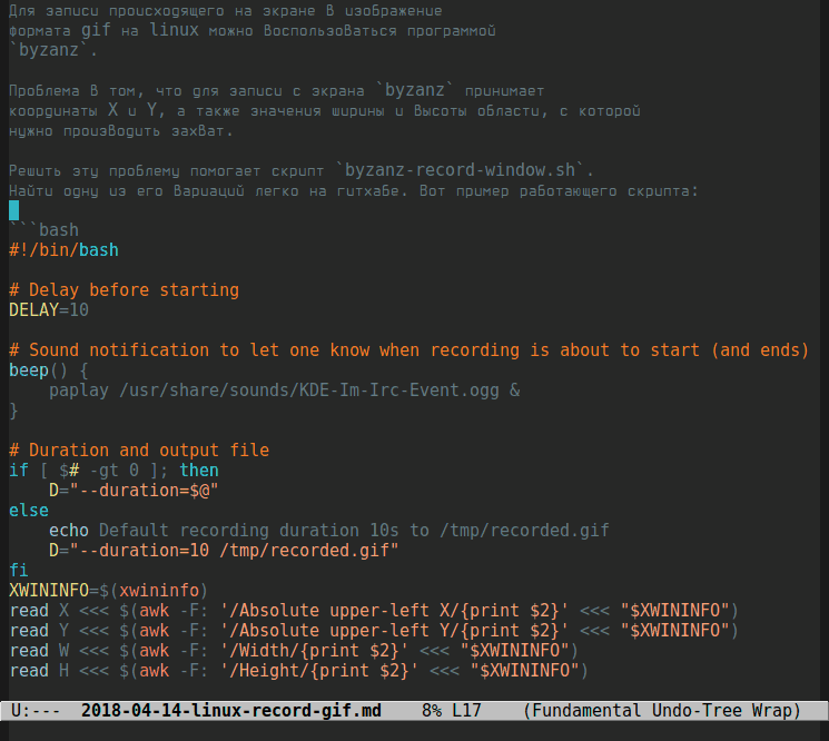 Чтобы записать все происходящее на экране, нужно сохранить данный скрипт под именем ```beyzanz-record-window.sh``` в домашнем каталоге, после чего выполнить команду