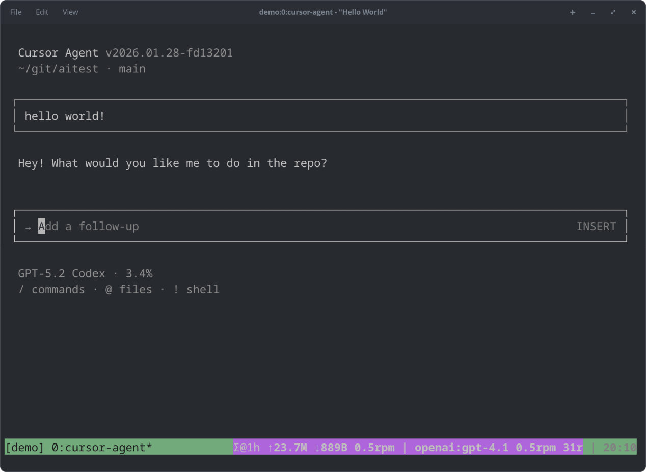 One caveat: different agents draw different prompt UIs, so the capture logic depends on the prompt shape. A future version of this script should be more modular in that respect; for now this is just a PoC tailored to Cursor Agent.